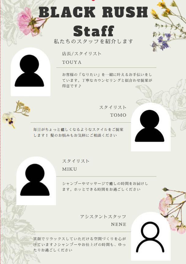 お客様一人ひとりの髪のお悩みやご希望をしっかりとお伺いし、最適なスタイルをご提案します。